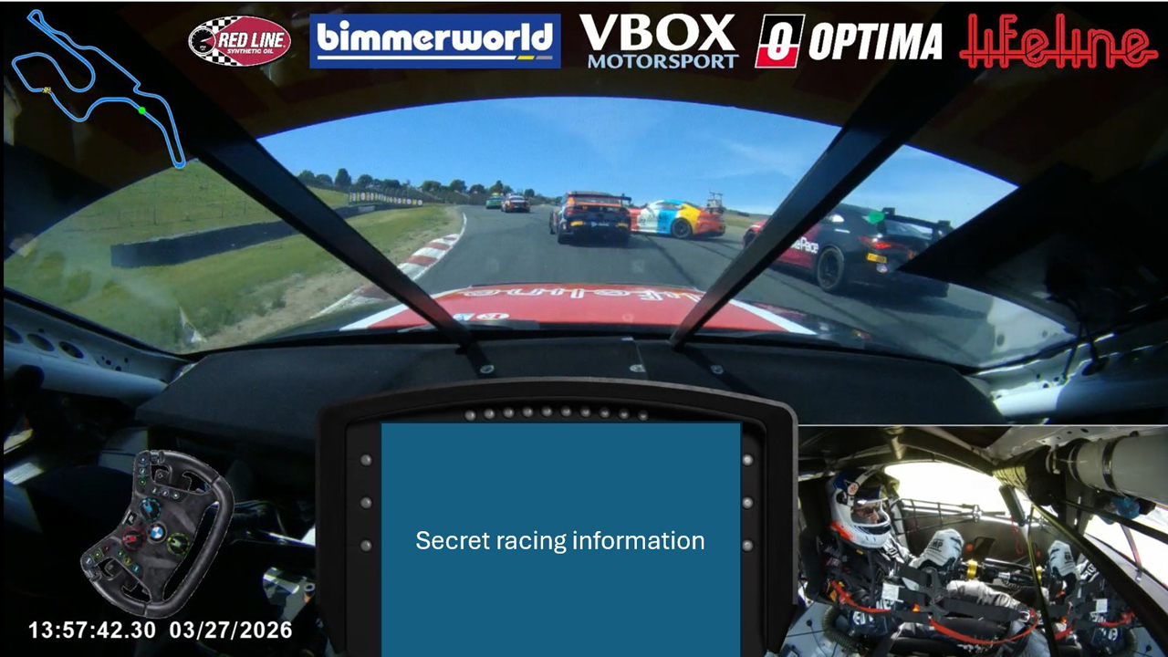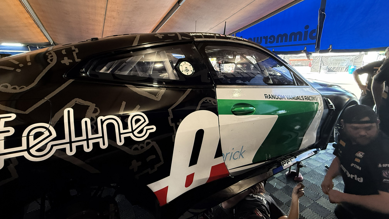 A: Well done, you remembered the foreshadowing. He started from last and was driving well, making moves, had passed a few competitors and ran as high as P3 in class…and then nudged the wall and broke some suspension pieces, relegating the rest of the race to an extended testing session.