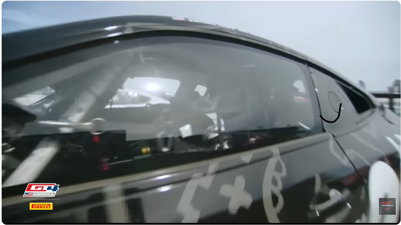 A: Barely. Those doors weigh about four pounds. They are made of carbon fiber, a material that explodes upon impact with the front end of a GT4 race car. So yes, the team had to get a new door for the #36 after the original was reduced to tiny black shards.
